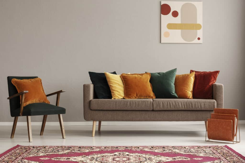 Nie zapominaj również o kolorowych grafikach czy plakatach, np. z kultowych filmów z tamtych lat. Uroku dodadzą także lampy stojące i wiszące, metalowe, szklane, czy z kolorowymi abażurami, a także kolorowe dywany w geometryczne lub etniczne wzory.